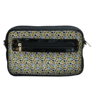 Materials: Soft Faux Leather, Flower Skull Print, Satin Lining, YKK (best in class zips and pullers, Silver Hardware.